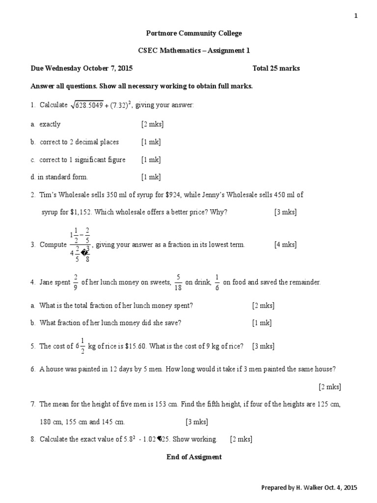 1. Calculate 628.5049 + (7.32) 2 , giving your answer: