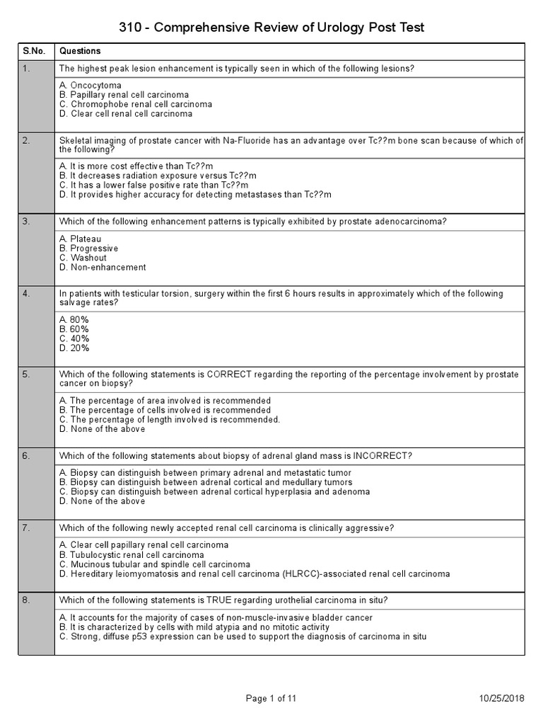 310 - Comprehensive Review of Urology Post Test