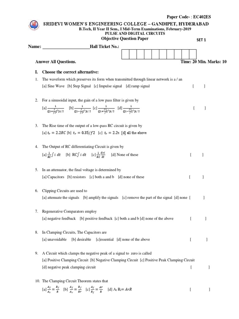 Objective Question Paper SET 1