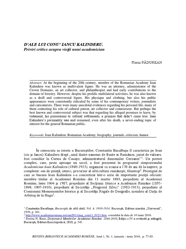 Keywords: Ioan Kalinderu, Romanian Academy, biography, journals, criticism, humor.
