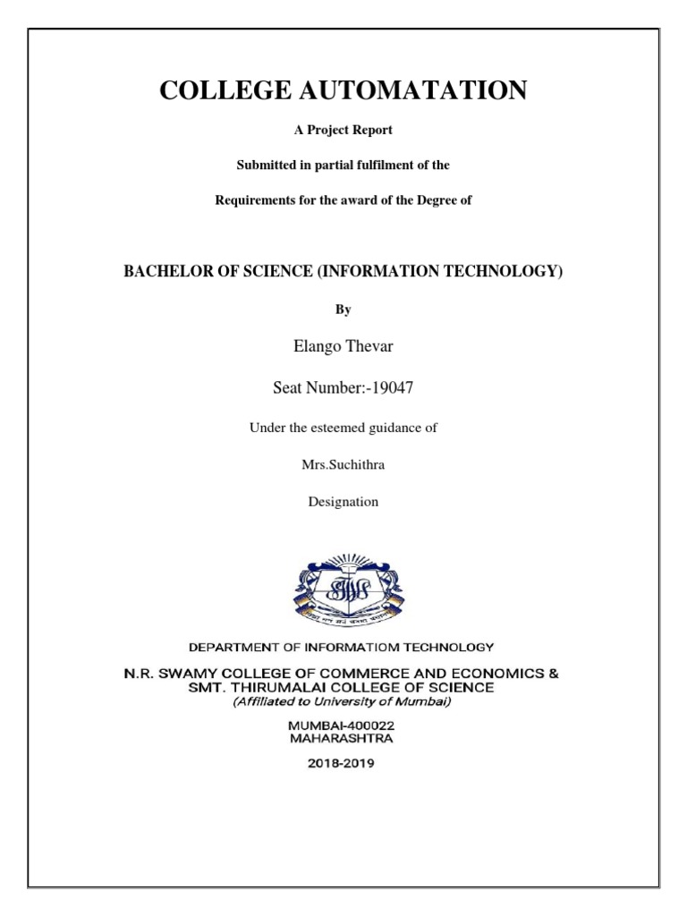 This is to certify that the project entitled, "College automation", is bonafide work of Mr. Elango