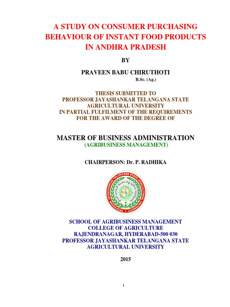BEHAVIOUR OF INSTANT FOOD PRODUCTS IN ANDHRA PRADESH”