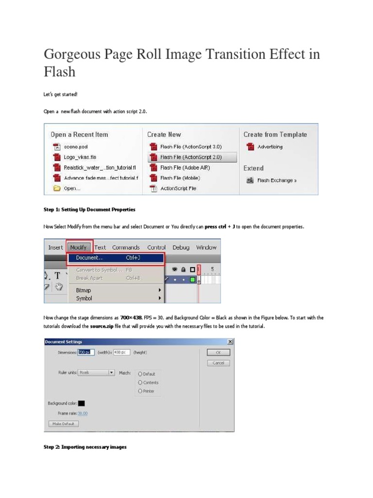 Now change the stage dimensions as 700 x 552 and the FPS is 24, as shown in the Figure below. To start with the tutorials download the
