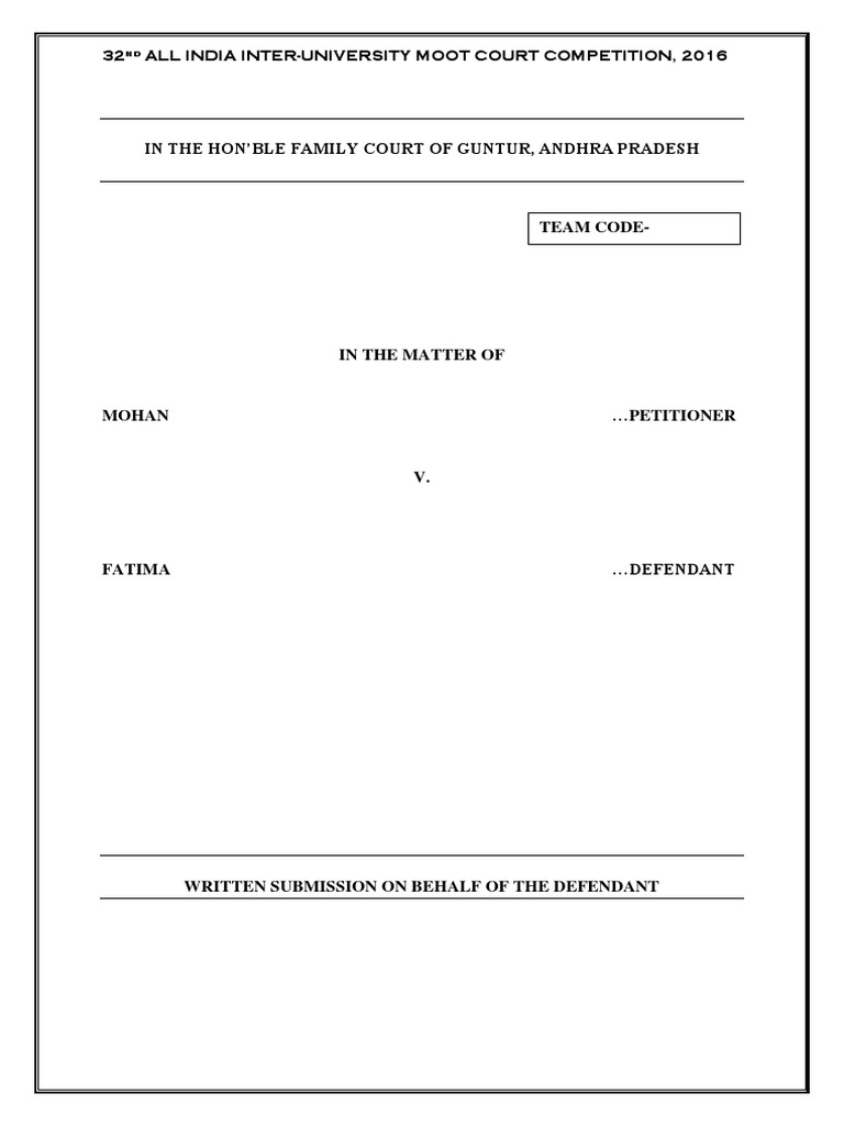 32nd ALL INDIA INTER-UNIVERSITY MOOT COURT COMPETITION, 2016