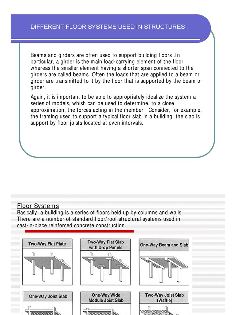 DIFFERENT FLOOR SYSTEMS USED IN STRUCTURES .