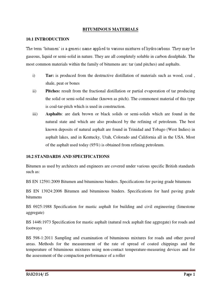 Bitumen as used by architects and engineers are covered under various specific British standards