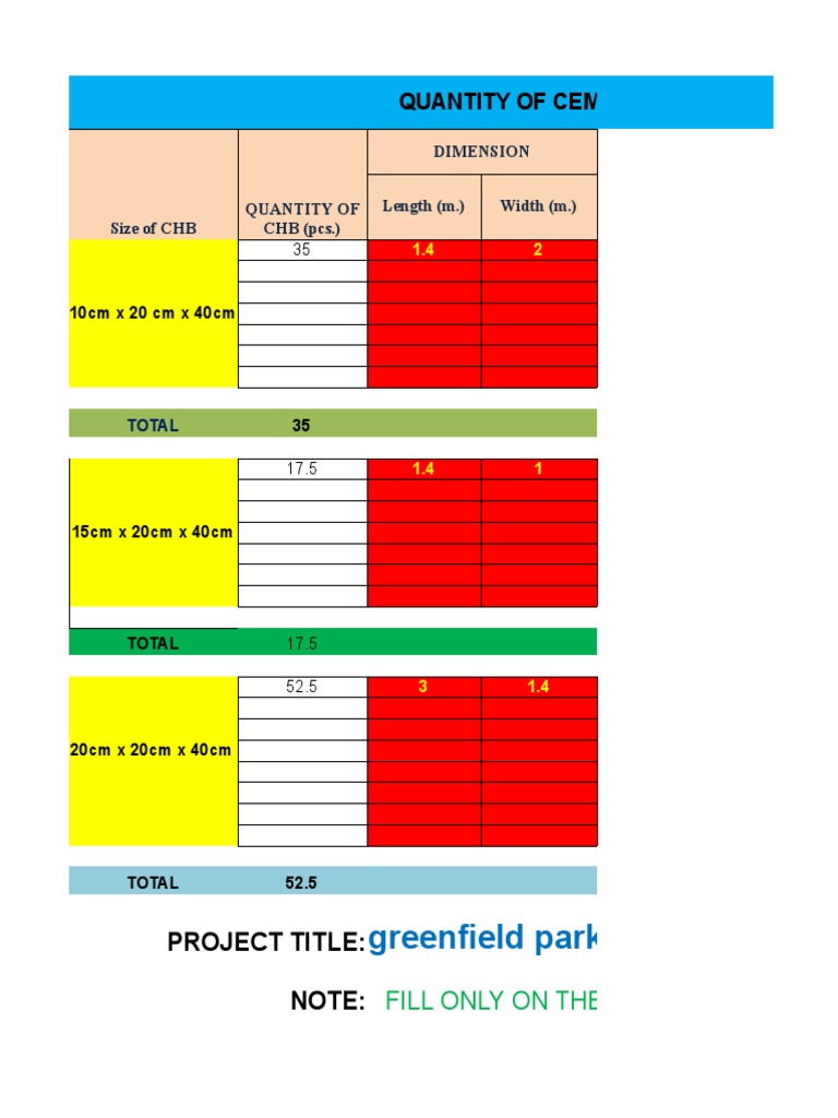 ARS FOR CHB IN METER LENGTH OF REINFORCING BA