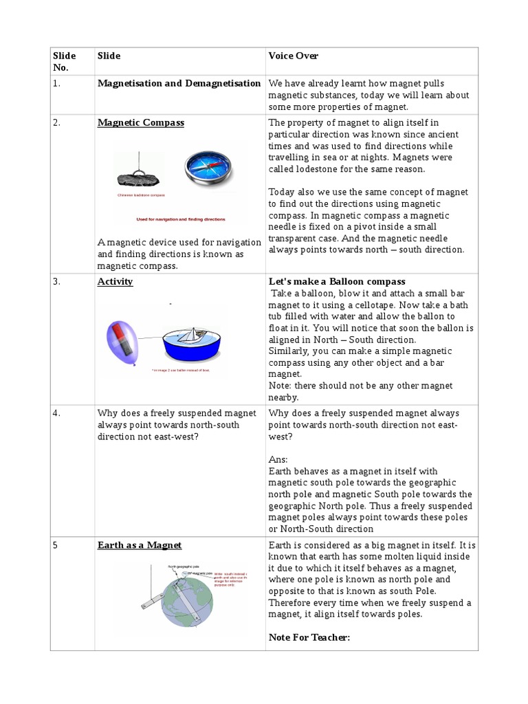 2. Magnetic Compass The property of magnet to align itself in