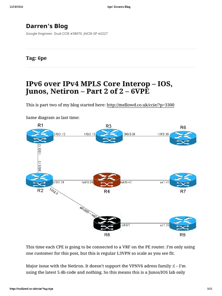 Junos, Netiron – Part 2 of 2 – 6VPE