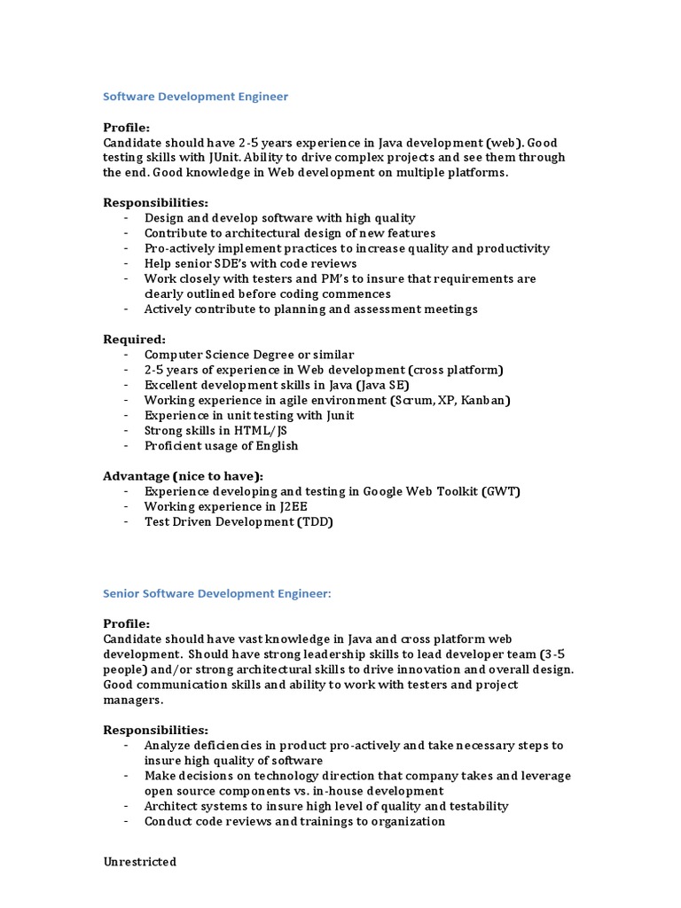 testing skills with JUnit. Ability to drive complex projects and see them through