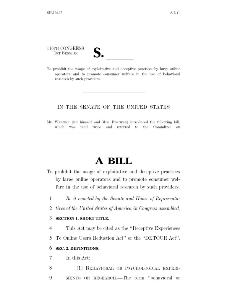 To Online Users Reduction Act’’ or the ‘‘DETOUR Act’’.