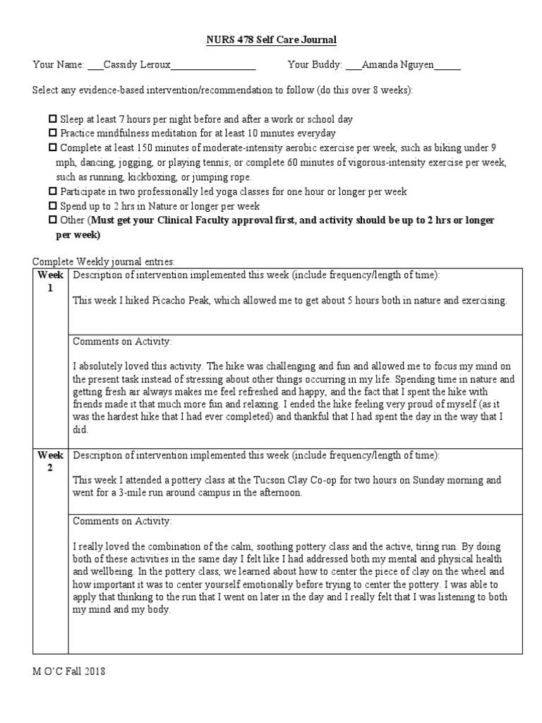 This week was the first time that I really challenged myself during this self-care journal. In the