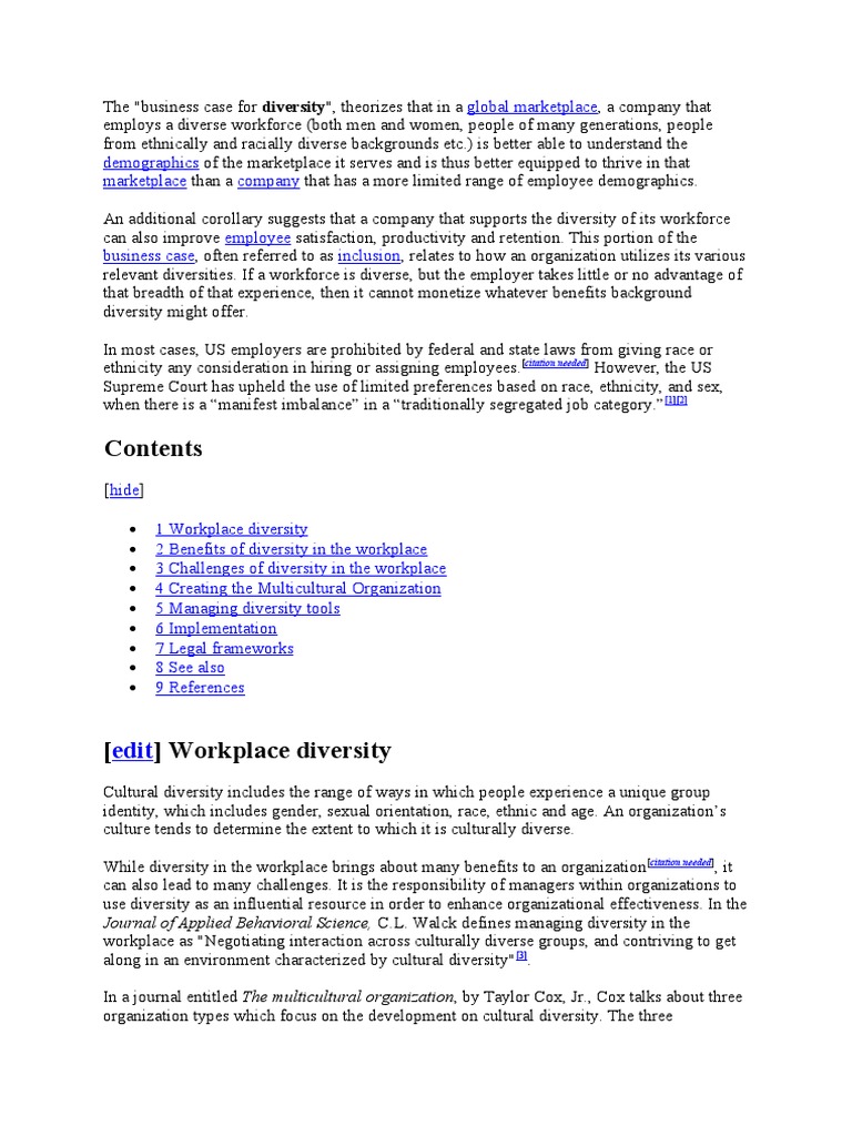 [edit] Workplace diversity