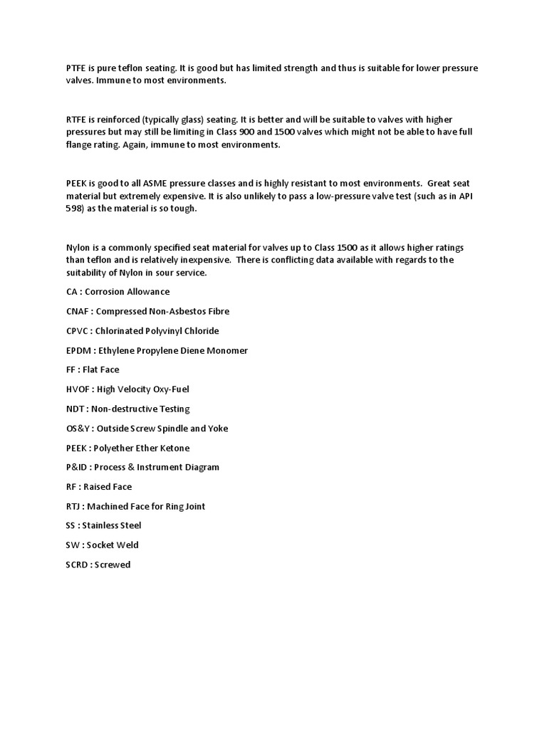 Nylon is a commonly specified seat material for valves up to Class 1500 as it allows higher ratings
