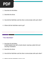 First, the document describes a taxi trip taken by the author late one night. After getting into the taxi, the author engages in friendly conversation with the taxi driver about his job and family. And finally, the author arrives at their destination having enjoyed the brief interaction with the driver during the ride.