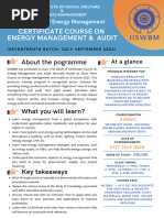 for caring out the energy audits in Process industries, Hospitals & Power sectors. The 4th - 8th September, 2017