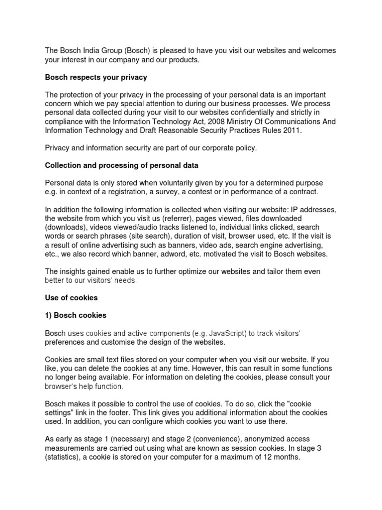 The Bosch India Group (Bosch) is pleased to have you visit our websites and welcomes