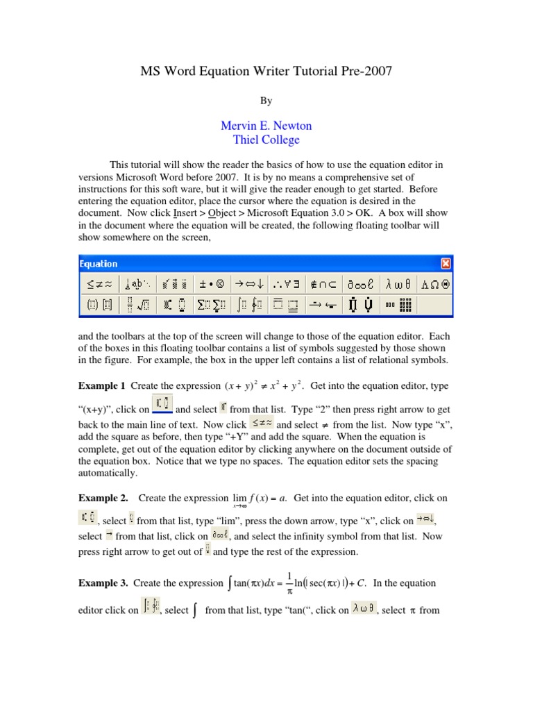 MS Word Equation Writer Tutorial Pre-2007