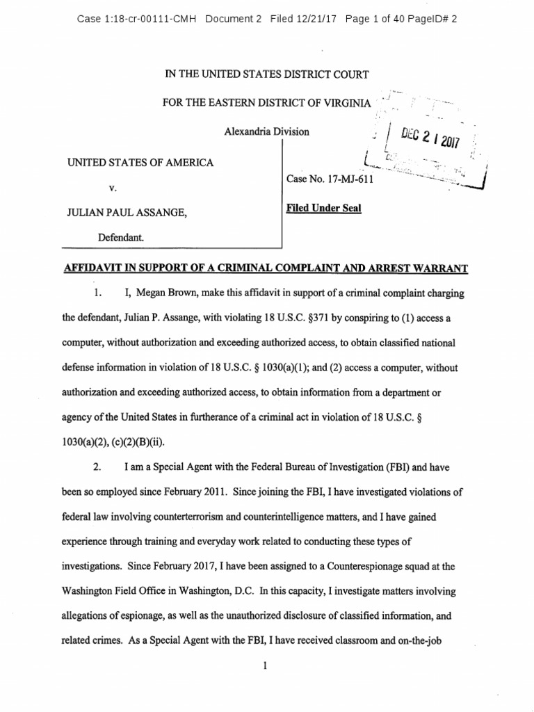 acriminalcomplaintchargingthedefendant,JulianP.Assange,withviolating18U.S.C.§371byconspiringto 1)accessa