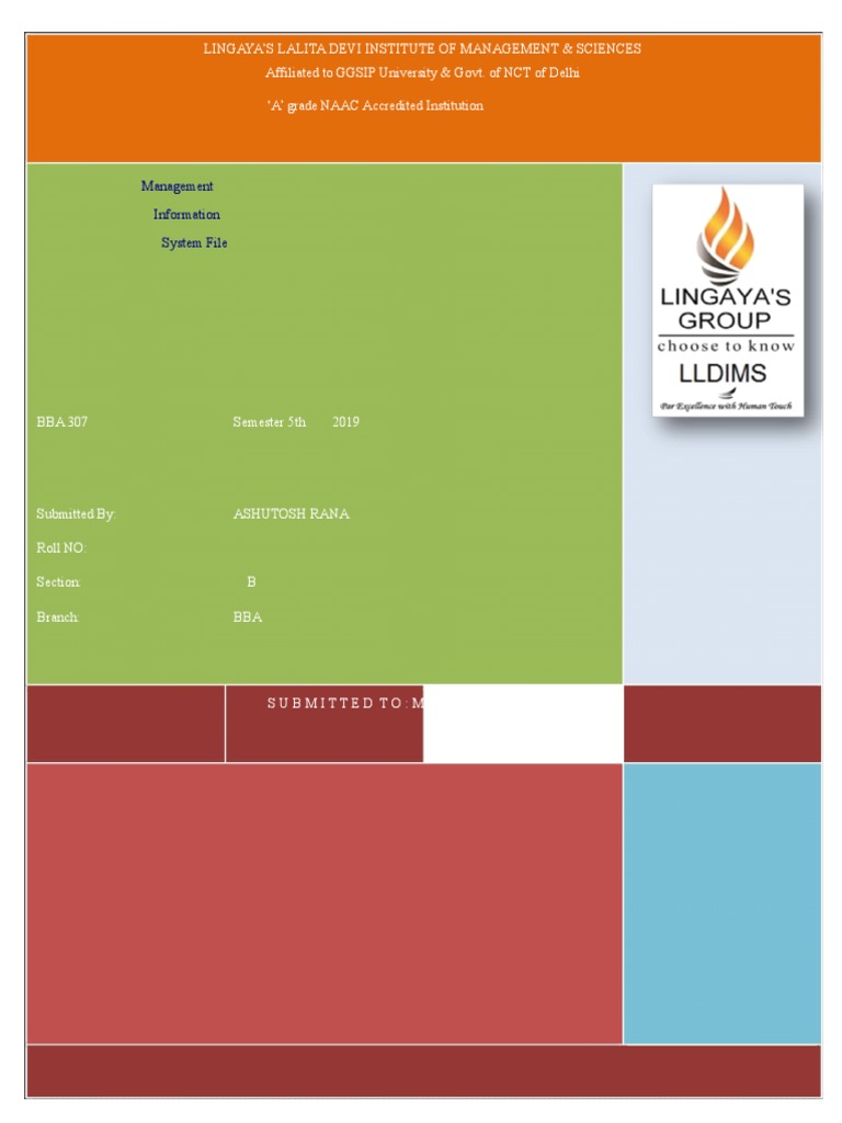 I hereby declare that the project report, entitled “MANAGEMENT INFORMATION