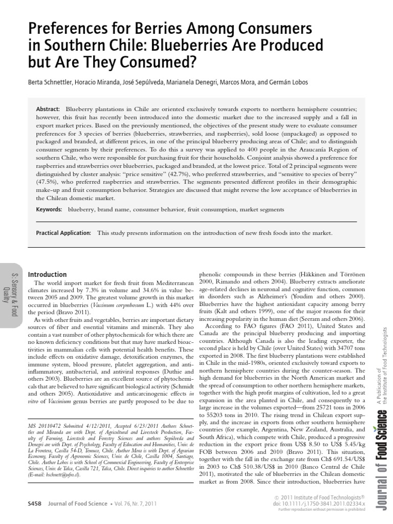 the preferences towards blueberries and species of fruits other than cipal berry exporting companies in Chile (Hortifrut), and loose
