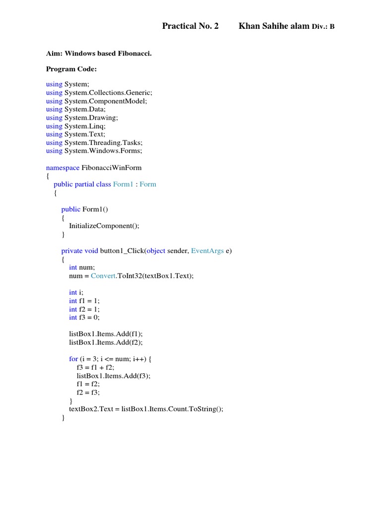 Aim: Windows based Fibonacci.