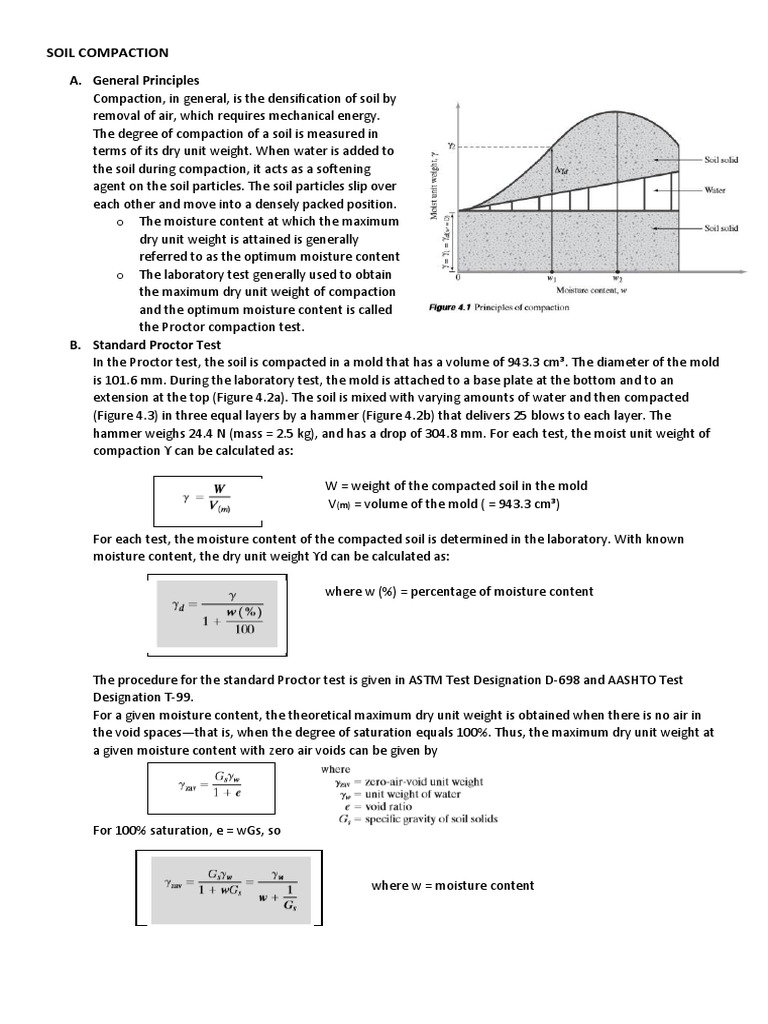 volume and also the weight of water present in a unit volume of soil. The dry unit weight of compacted soil can be