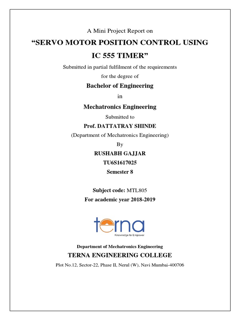 This is to certify that the project report entitled “Servo motor position control using IC 555