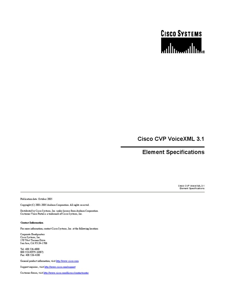 • User Guide. This document provides an introduction to Cisco CVP VoiceXML software though it focuses on describing all aspects