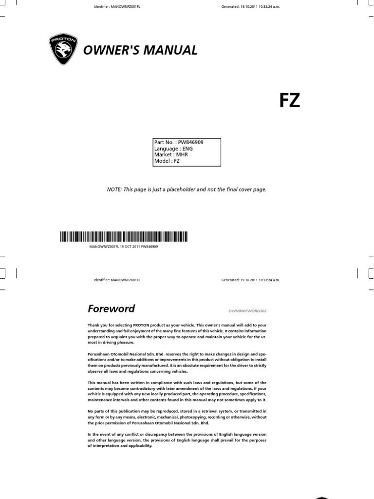 Thank you for selecting PROTON product as your vehicle. This owner's manual will add to your