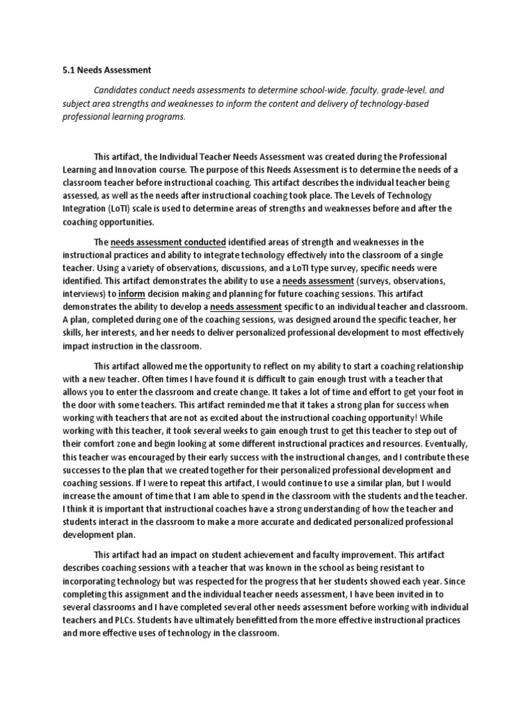 This artifact, the Individual Teacher Needs Assessment was created during the Professional