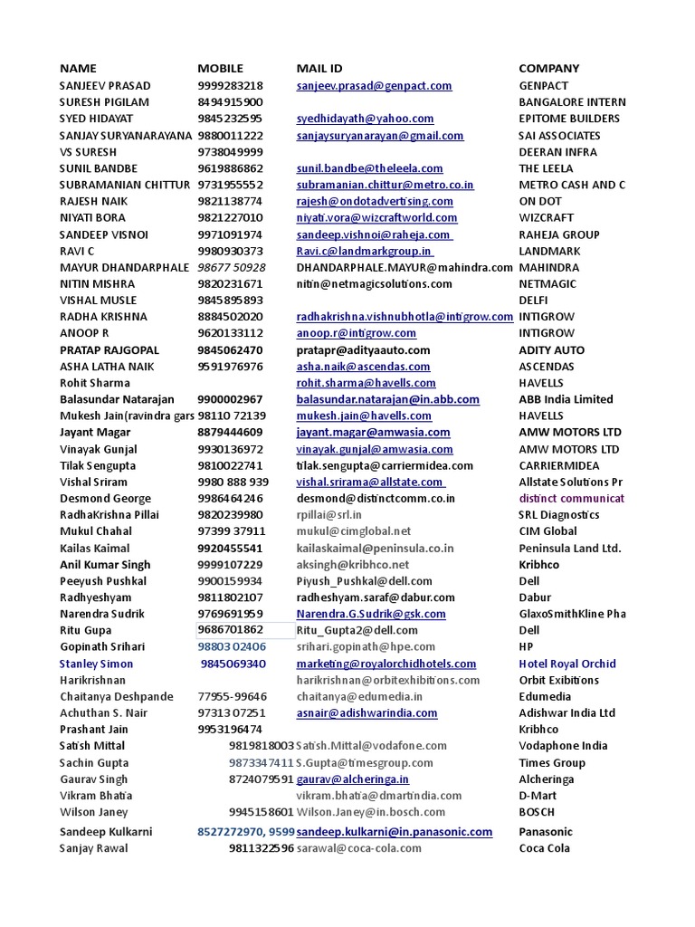 Mumbai Vice President IT 022-3340 0000 Retail Given to Daniel