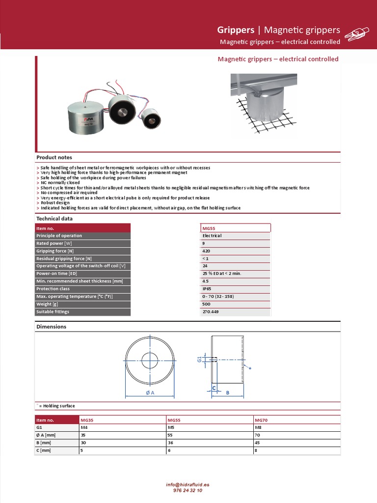 > Indicated holding forces are valid for direct placement, without air gap, on the flat holding surface