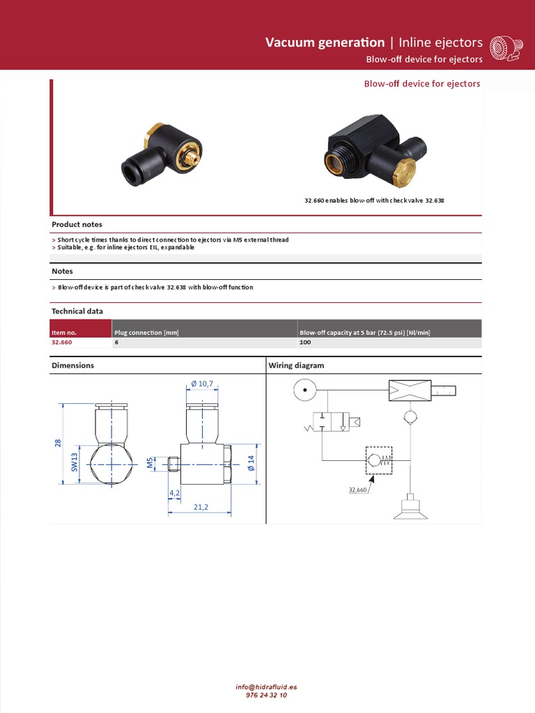 Item no. Plug connection [mm] Blow-off capacity at 5 bar (72.5 psi) [Nl/min]