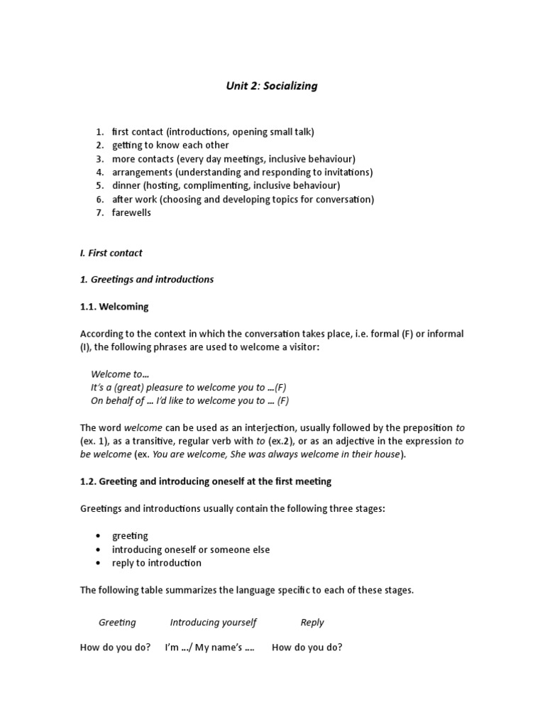 Unit 2: Socializing
