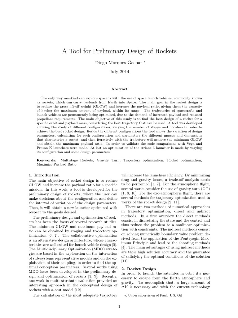 as rockets, which can carry payloads from Earth into Space. The main goal in the rocket design is