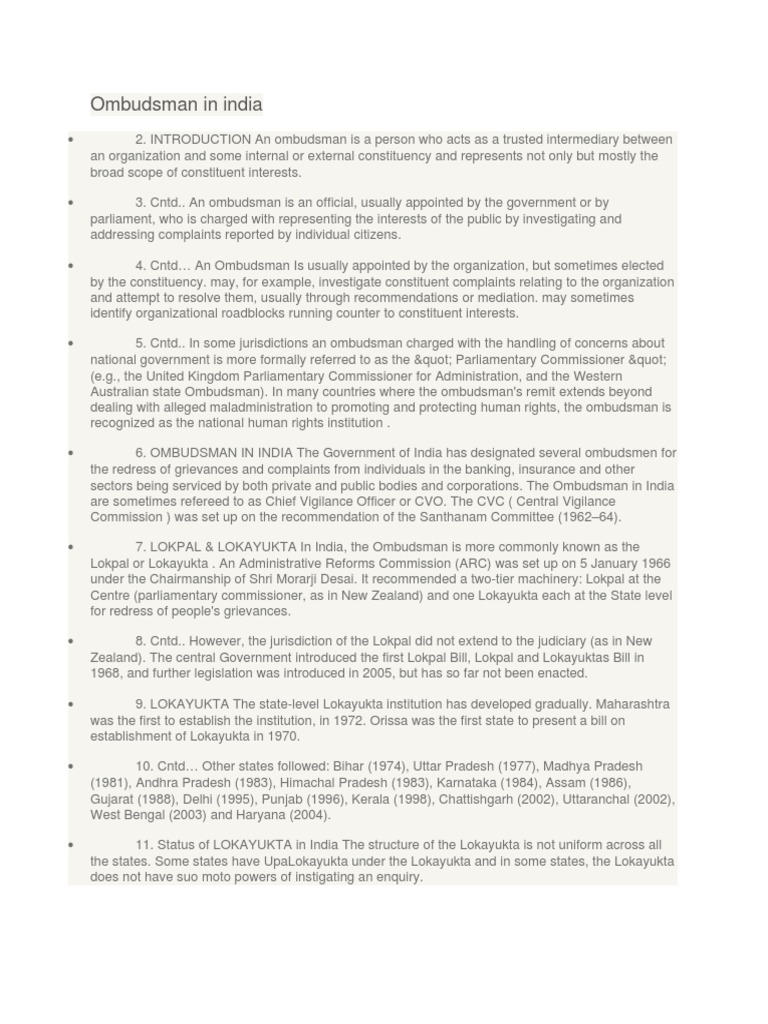 • 7. LOKPAL & LOKAYUKTA In India, the Ombudsman is more commonly known as the
