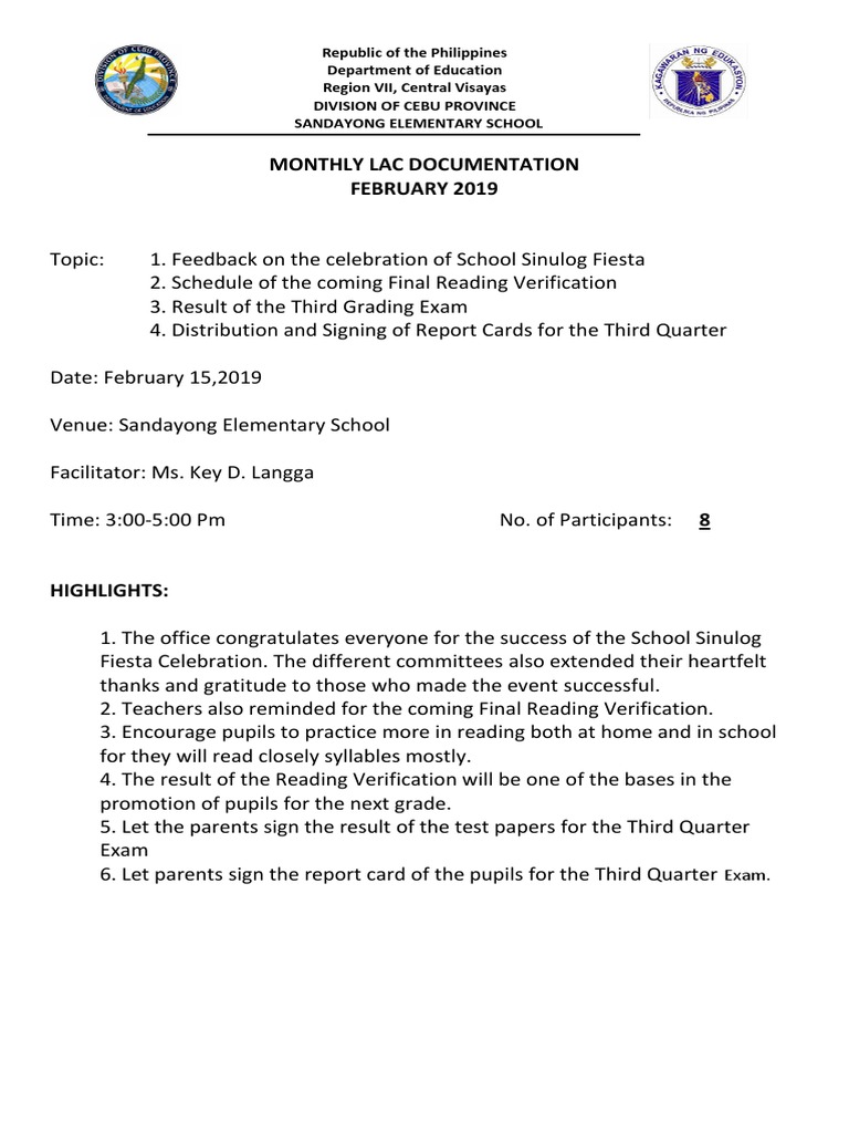MONTHLY LAC DOCUMENTATION