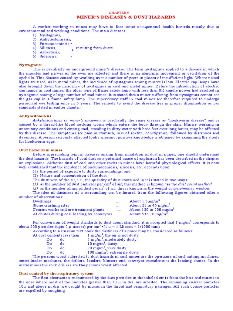 MINER'S DISEASES & DUST HAZARDS