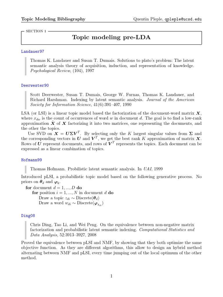 Topic Modeling Bibliography Quentin Pleple, qpleple@ucsd.