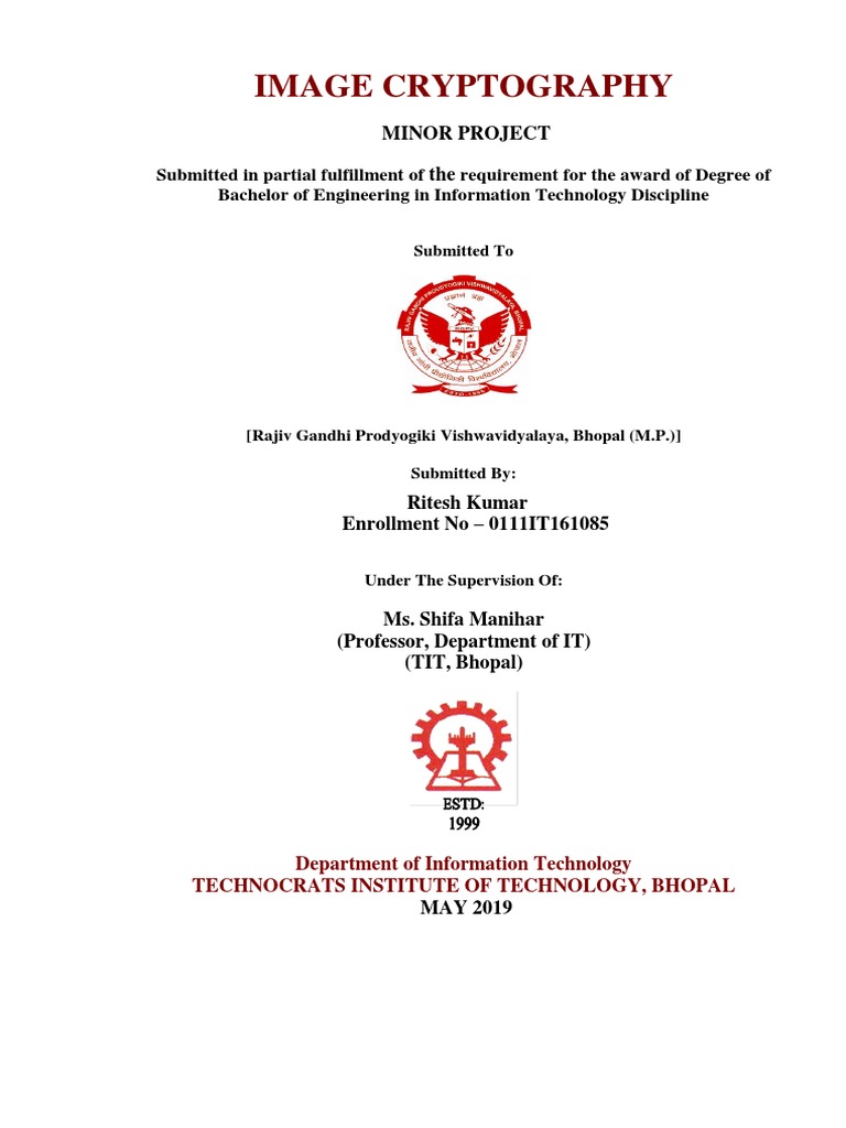 The Project entitled “Image Cryptography” being submitted by “Ritesh