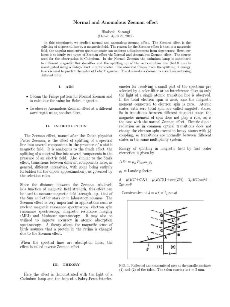 focus is to study two types of Zeeman effect viz Normal and Anomalous Zeeman effect. The source