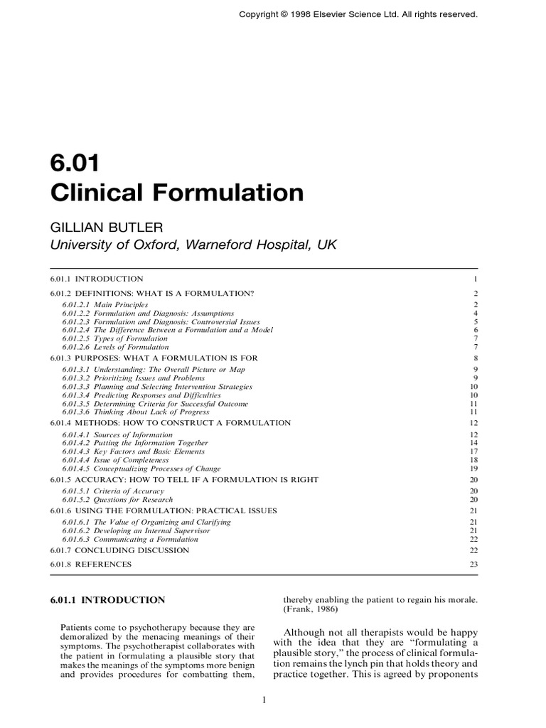 6.01 Clinical Formulation: Gillian Butler University of Oxford, Warneford Hospital, UK