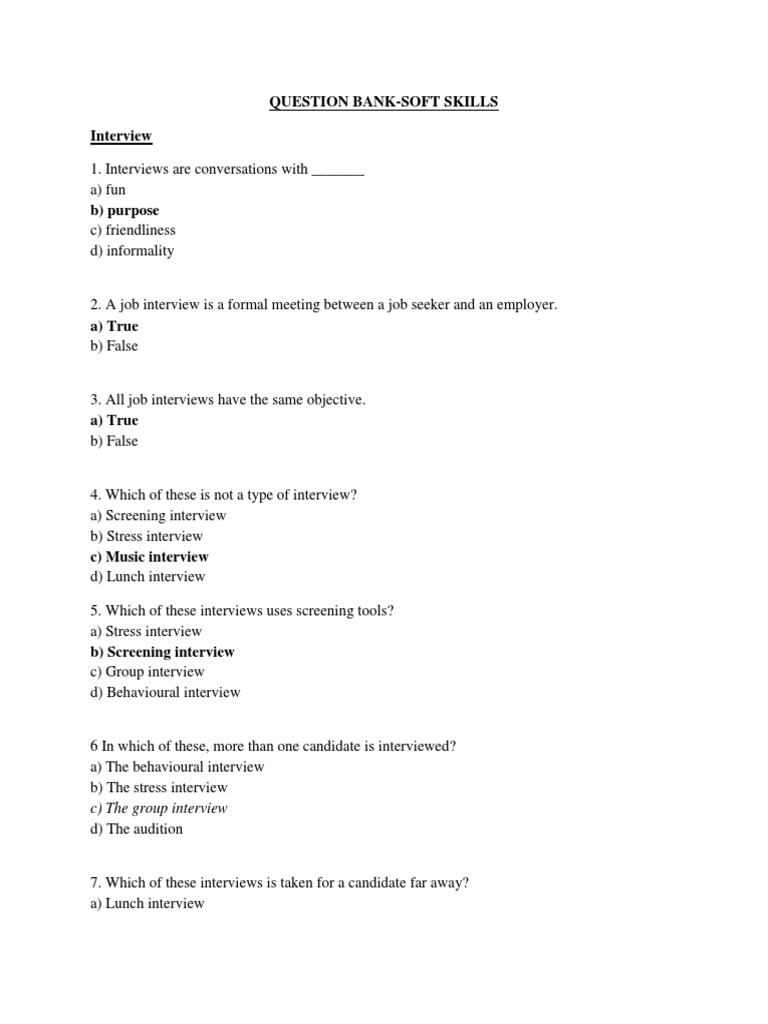QUESTION BANK-SOFT SKILLS