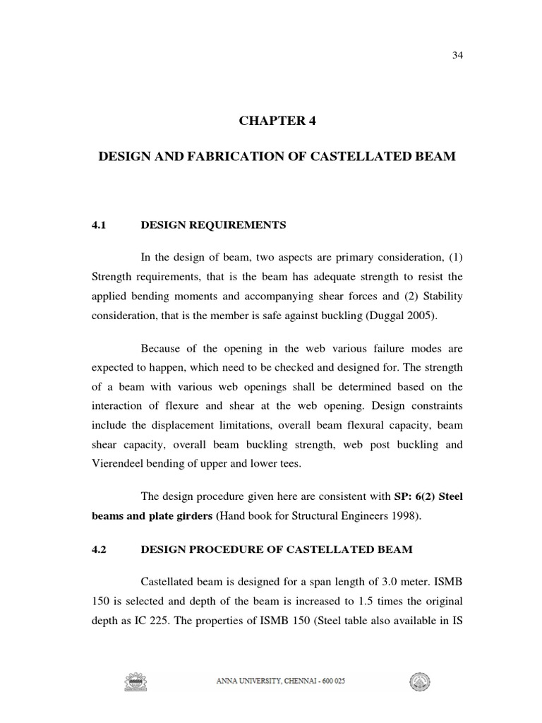 225) from ISMB 150. Table 4.2 gives the properties of steel.