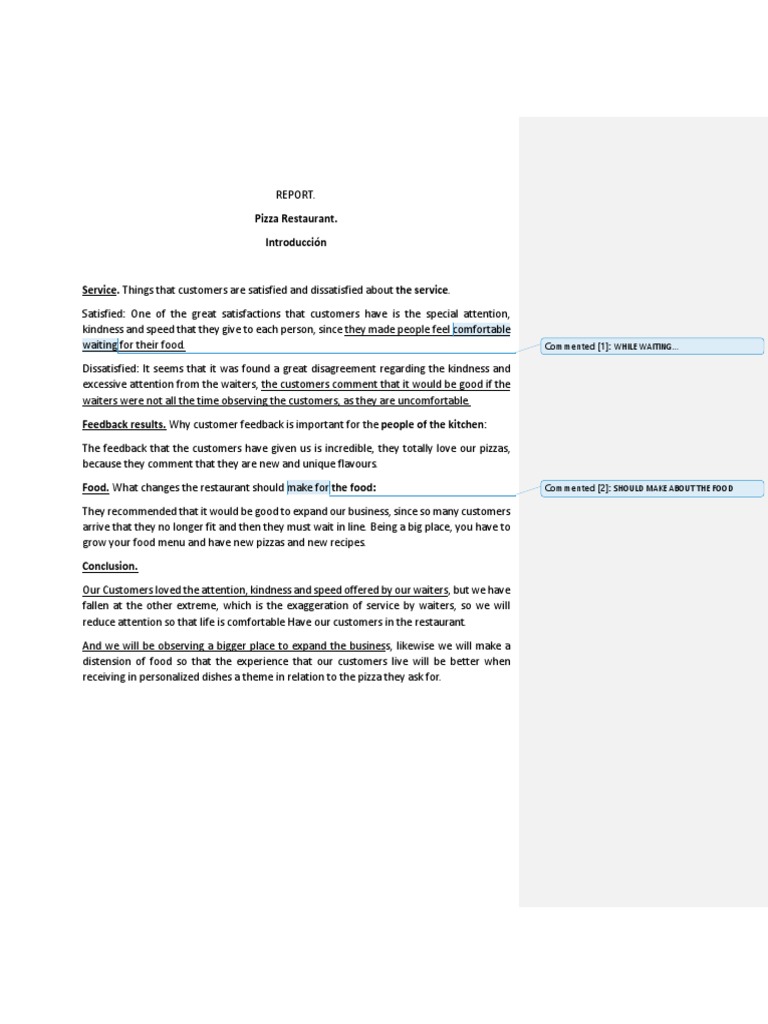 Food. What changes the restaurant should make for the food: Commented [2]: SHOULD MAKE ABOUT THE FOOD