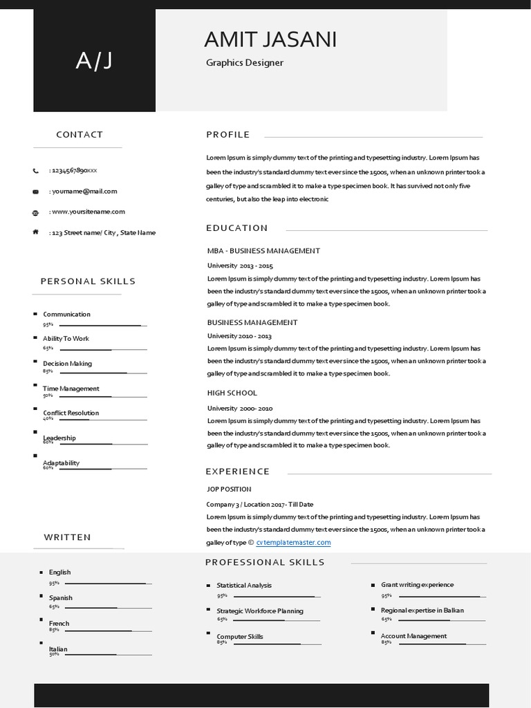 WRITTEN galley of type © cvtemplatemaster.com