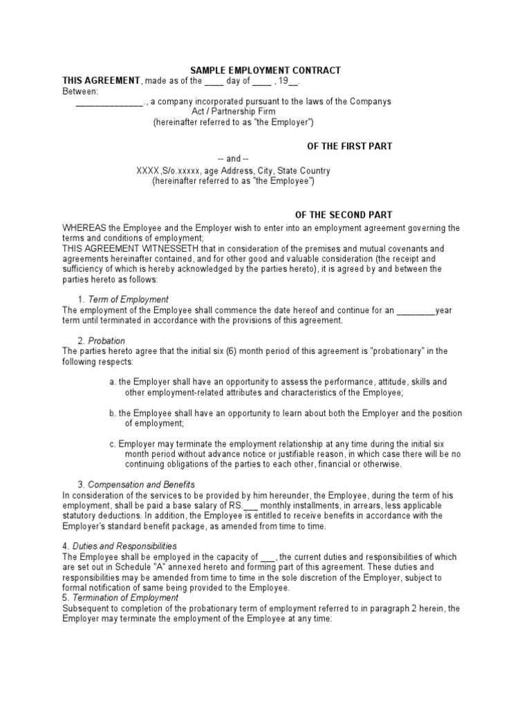 SAMPLE EMPLOYMENT CONTRACT