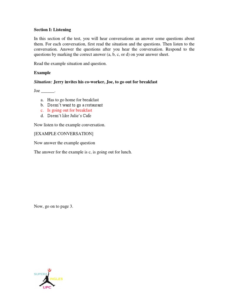 In this section of the test, you will hear conversations an answer some questions about