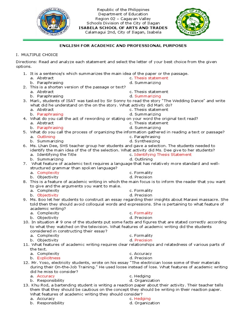 3. Mark, students of ISAT was tasked by Sir Sonny to read the story “The Wedding Dance” and write